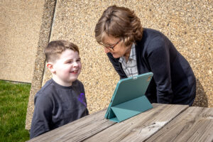 His teacher, a well-meaning adult, models a complex sentence on his speech-generating device (SGD): “I want to go play.” It requires a series of intricate button presses. It’s far beyond what Jaden can say independently right now. And while the adult is patiently modeling, Jaden is struggling, still unable to make his needs known. Still waiting.
